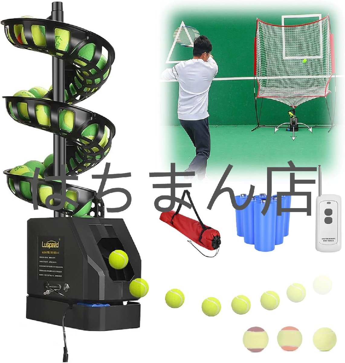 - テニス自動球出し機 ソフトテニス 練習器具 テニスサーブ練習機 リモコン付き 球ネット/収納袋 取っ手付 テニスボール投げ機 B
