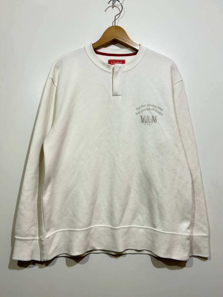 > ★ VAN JAC ハーフジップ 長袖 カットソー ロンT きなり ホワイト ロゴ刺繍 ロングスリーブトップス カットソー L ヴァンジャック