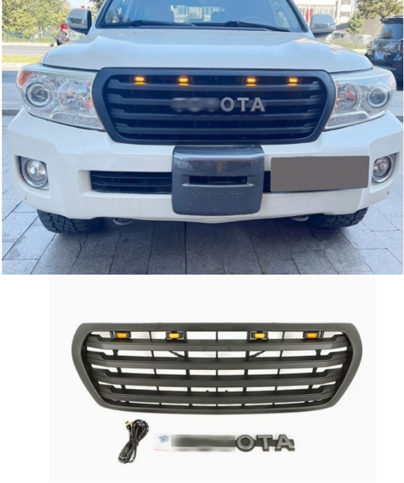 - トヨタ ランドクルーザー200系 2007-2015年 前期中期 LED付き フロントグリル フロントガーニッシュ外装カスタム TOYOTAロゴ付き