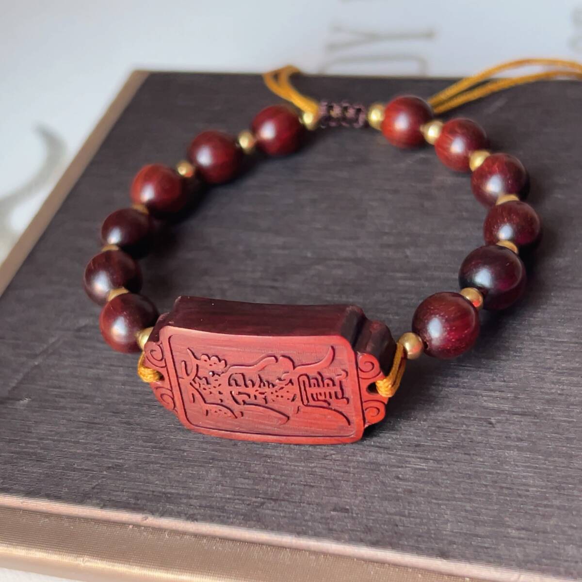 - ◇紫檀木◇ブレスレット◇太符◇男女兼用◇天然木◇数珠・念珠・木珠◇巾着袋付き◇プレゼントにも 020B1222