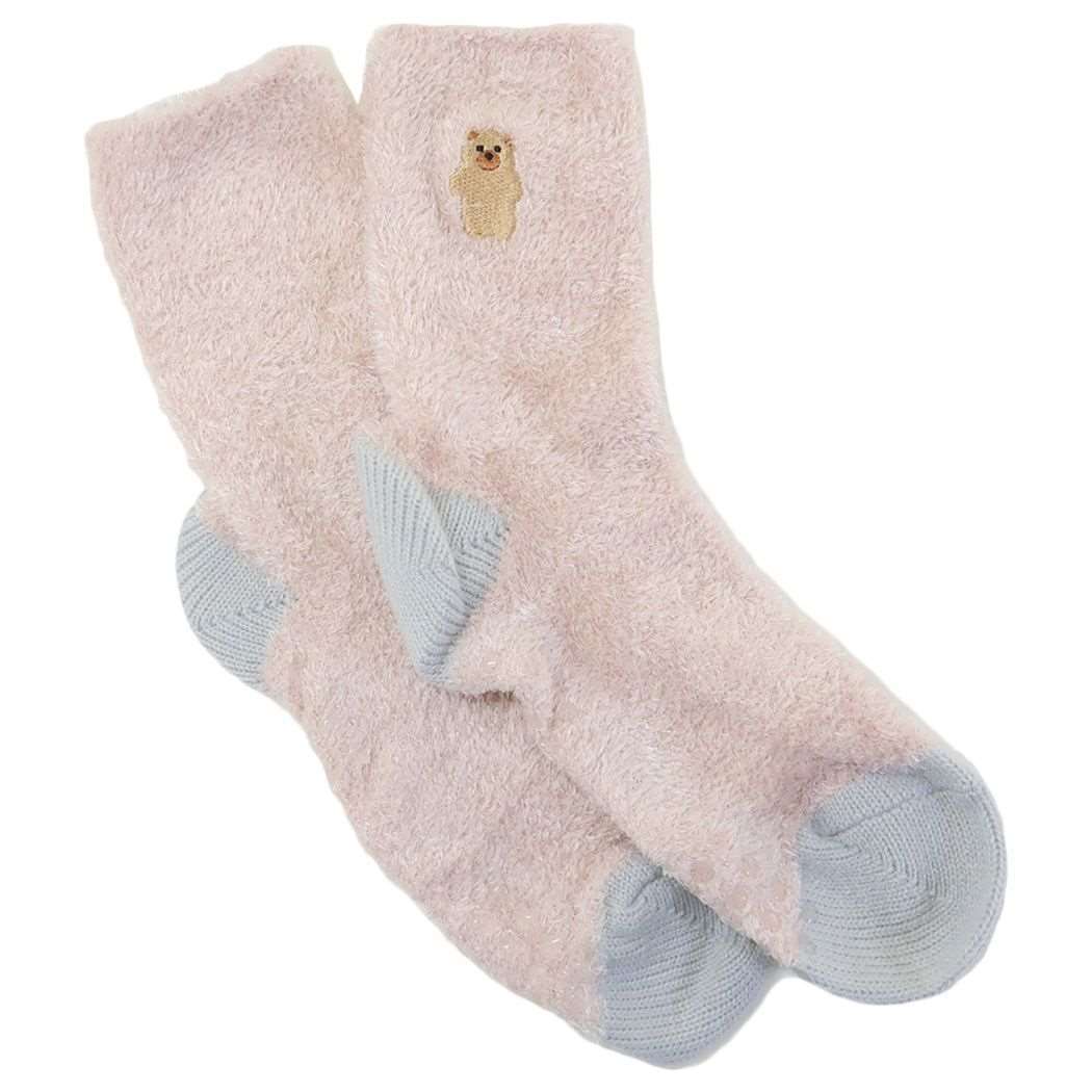 - 靴下レディース ウルオイモコベア かかと保湿ルームソックス ウォーマー雑貨 ピンク