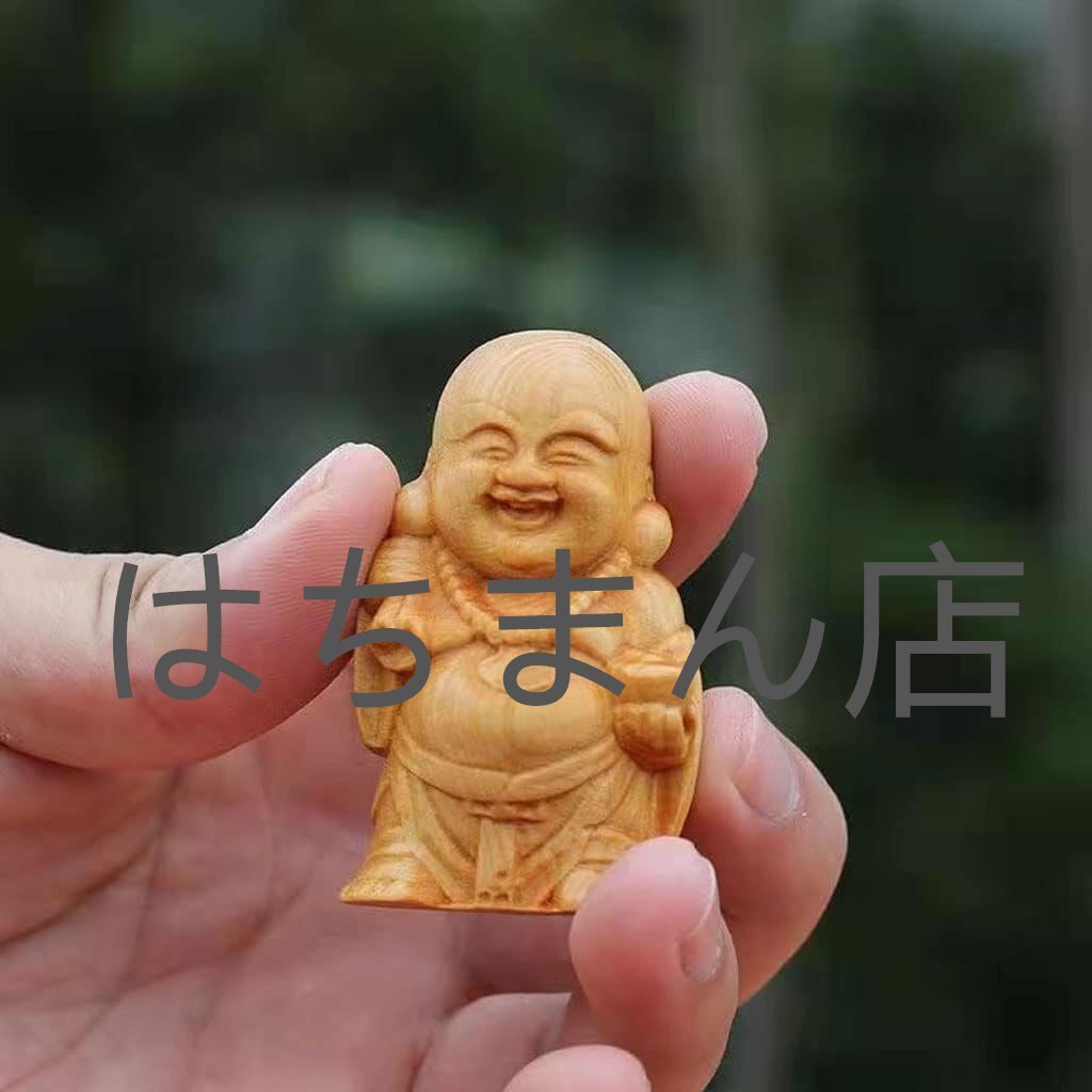 - 七福神 布袋 天然 崖柏木 仏像 木彫りミニ 布袋さんの置物 風水(高さ6.5cm×巾3cm×奥行2.4cm)