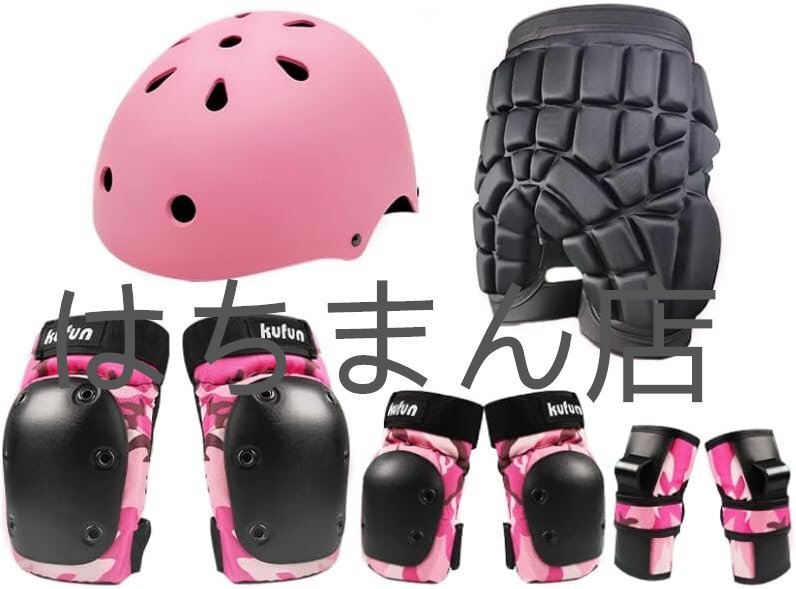 - プロテクター スノーボード 子供 大人用 手首/肘/膝/頭/臀 8点セット ケガ防止 落下防止保護 肘当て 膝パッド pink L(50-75KG)