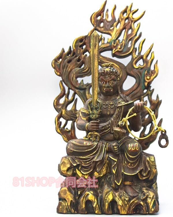 - 「81SHOP」仏像 不動明王 座像 復古 木彫り 仏像 不動尊木製 仏様 お守り本尊 総高18.5CM