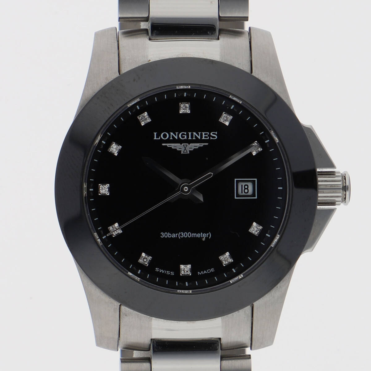 - LONGINES ロンジン L3.257.4576 コンクエスト ブラックダイヤル SS クオーツ レディース【120554】
