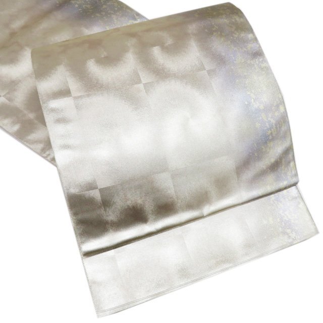 - 袋帯 中古 リサイクル 正絹 フォーマル 仕立て上がり 六通 巧芸引箔 市松 銀色 多色 きもの北條 A1123-13