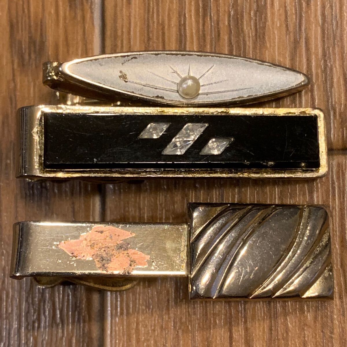 - 送料無料 US ヴィンテージ ネクタイピン 3個セット ラインストーン ミニパール