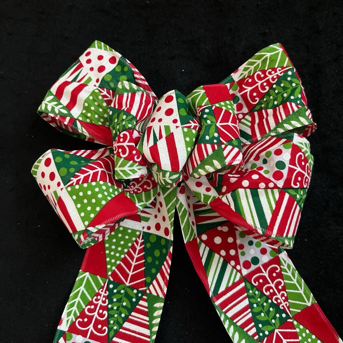 - クリスマスリース用リボン カラフル ポップなクリスマスリボン 赤緑白 幾何学模様