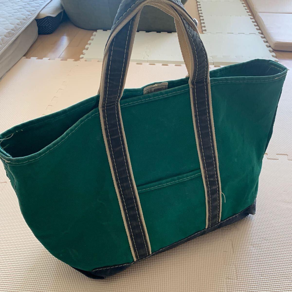 > 80s 希少【L.L.BEAN】エルエルビーン デラックス トートバック ラージ L ビンテージ ギザギザ ギザタグ グリーン×ネイビー USA製