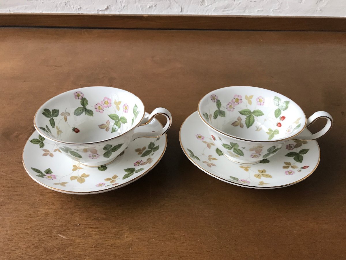 - 【中古】WEDGWOOD ENGLAND ウェッジウッド/カップ & ソーサー ペアセット/苺の花 金彩 箱なし