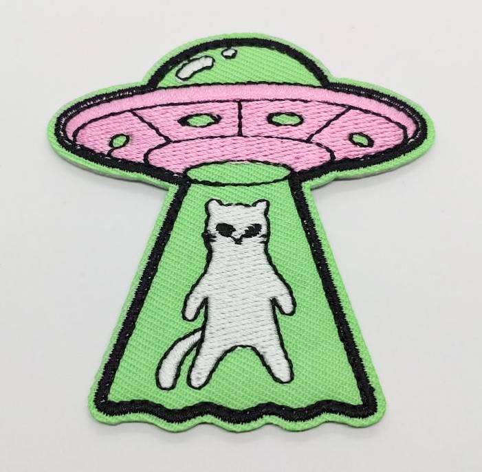 - 送料無料 UFO アブダクション ネコ 未確認 アイロン のりつき 刺繍 ワッペン アップリケ アメリカン雑貨 スマアク