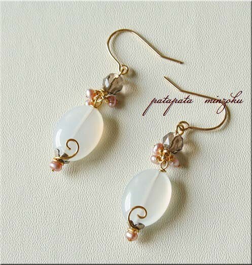 - ホワイト カルセドニー ピアス アルテミス 14K パワーストーン 天然石
