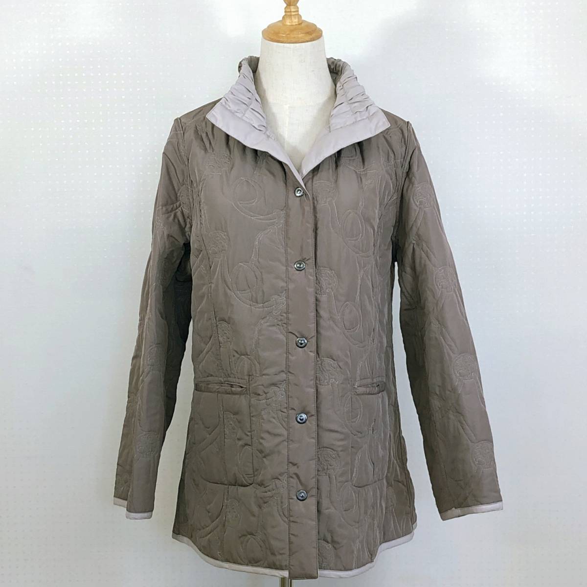 - YAS0984 美品 VORNEHME DAME レディース アウター ジャンパー ジャケット リバーシブル Lサイズ ブラウン 茶 刺繍 エレガント シック 秋冬