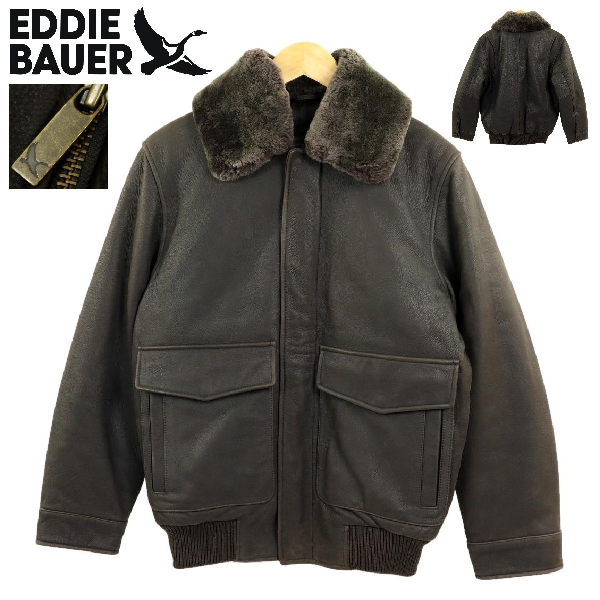 > 【S3354】【極美品】【2WAY】Eddie Bauer エディーバウアー G-1 フライトジャケット レザージャケット ダウンジャケット サイズXS