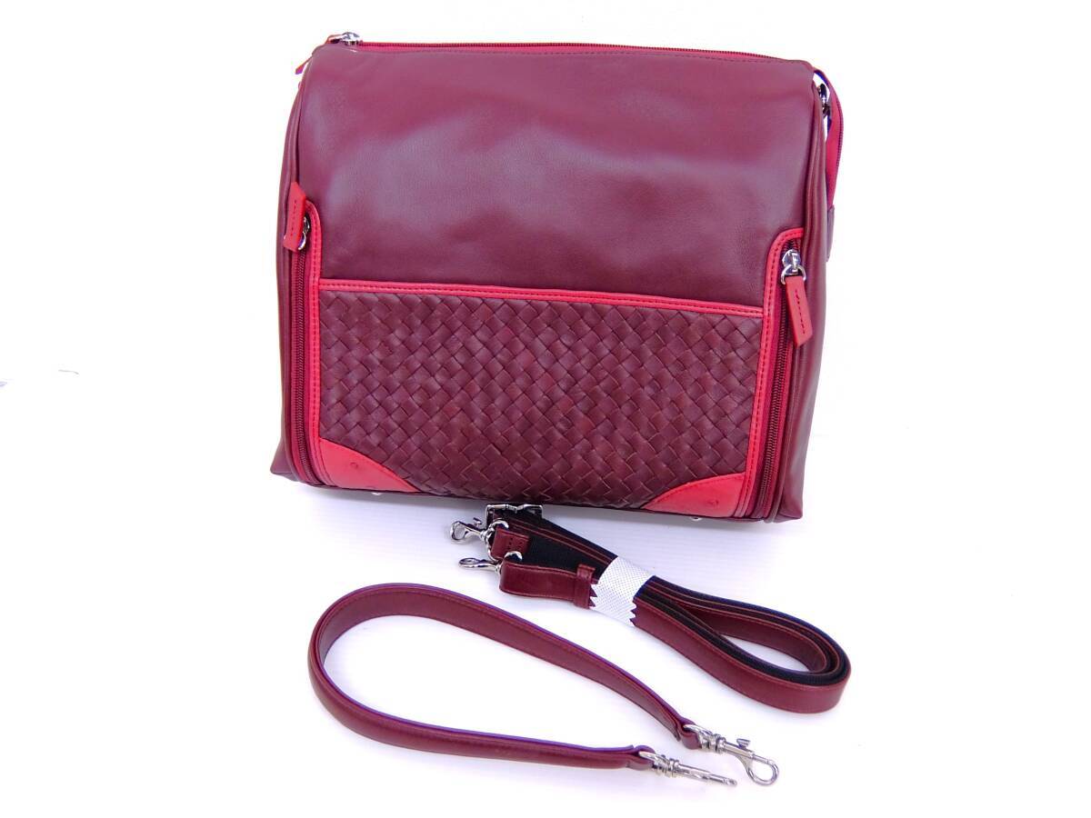 - 新品 タグ付き 未使用 オーストリッチ ラム 革 エキゾチックレザー ワインレッド 2WAY バッグ 鞄 ダチョウ 羊