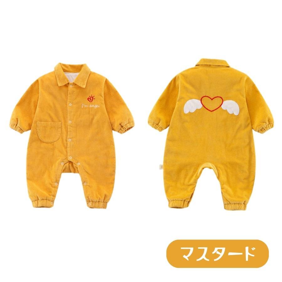 - やわらか素材 コーデュロイ エンジェル柄 ロンパース つなぎ 韓国子供服 おしゃれ 乳幼児 キッズ ベビー服 (90, マスタード)