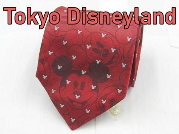- 【ディズニー ミッキーマウス】OD 376 東京ディズニーランド Tokyo Disneyland ネクタイ 赤系 キャラクター ドット ジャガード