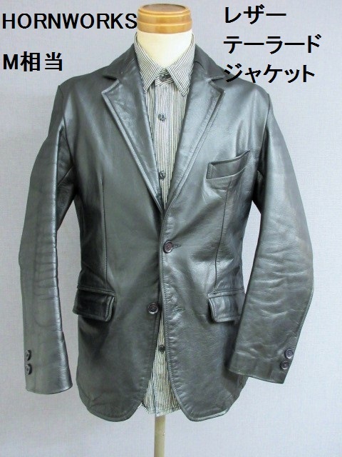 - M相当 HORN WORKS レザーテーラードジャケット 革ジャケット 革ジャン(ホーンワークス 本革 メーカーサイズLL