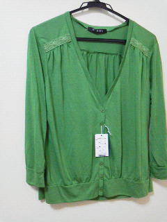 - ●新品1枚あると便利なカーデーガン綺麗なグリーン肩レースLLサイズ