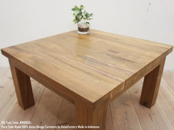 - オールドチーク無垢材 スクエアテーブル60cmSQ コーヒーテーブル ナチュラルテーブル 飾り台 花台 ちゃぶ台 ローテーブル1~2人用