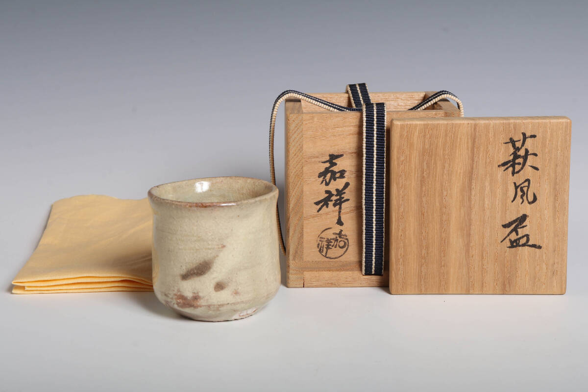 - 9057 森岡嘉祥 萩風盃(共木箱) ぐい呑 杯 盃 酒器 真作