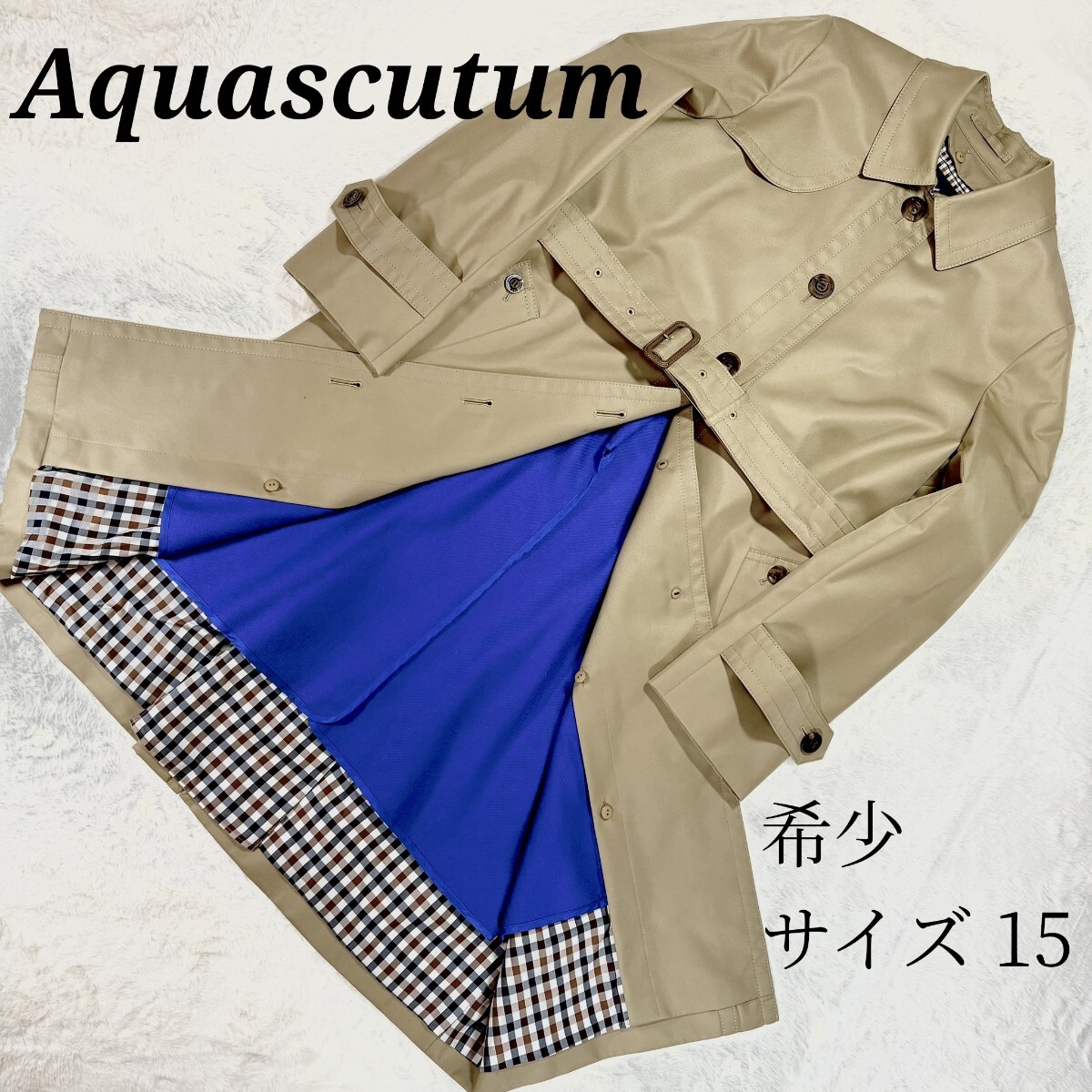 > 【定価15万】希少 サイズ15 3L 極美品 Aquascutum アクアスキュータム ステンカラー トレンチコート ウールライナー ベージュ ★1000