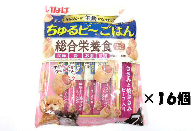 - 1点のみ・いなば ちゅるビーごはん 総合栄養食 ささみと焼ささみビーフ入りグレインフリー 10g×7入×16個【期限2025.11】