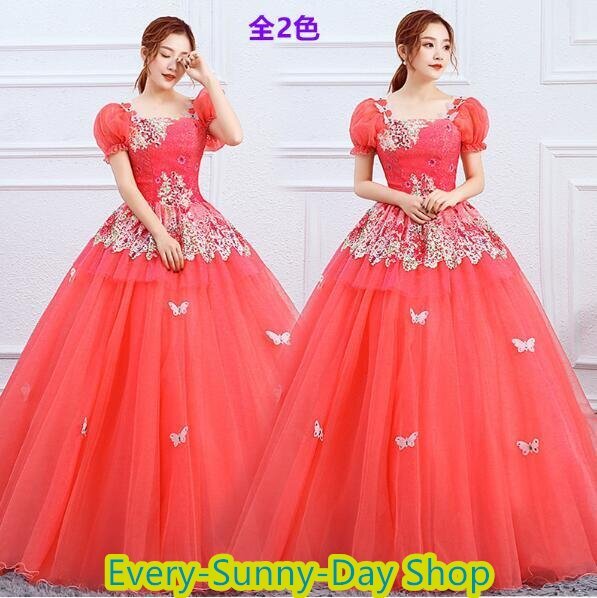 - 大人気 超可愛い カラードレス ウェディングドレス ロングドレス パーティドレス ワンピ Aライン ピンク レッド パニエ付 結婚式 発表会