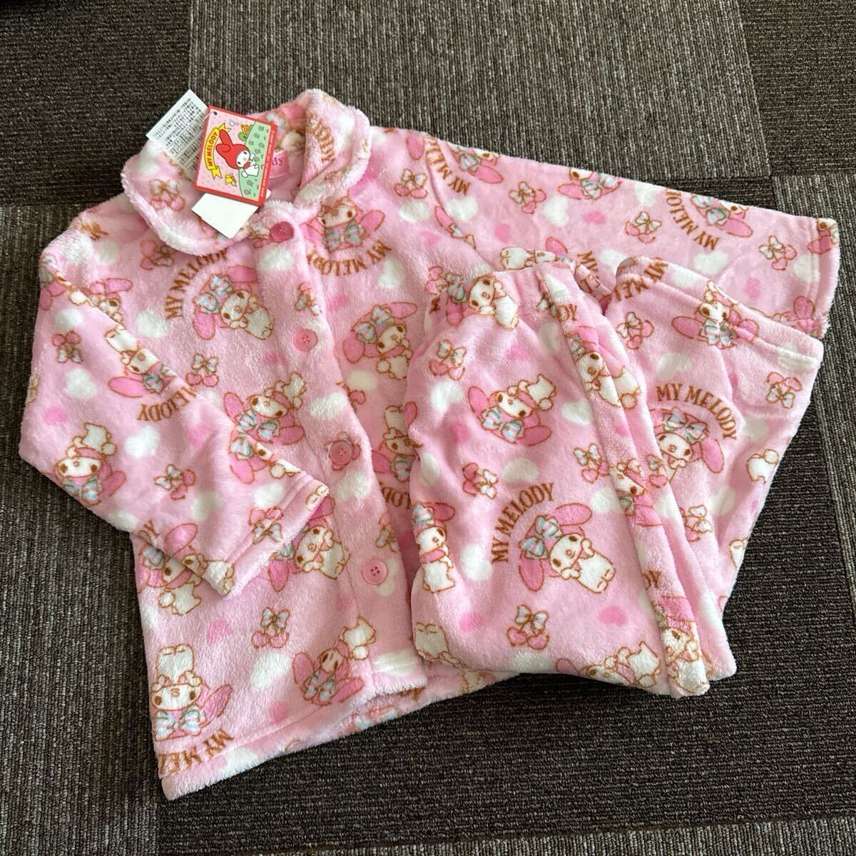 - 【80】マイメロディー あったかもこもこパジャマ 130㎝ サンリオ ピンク 長袖パジャマ パジャマ ルームウェア リボン 上下セット