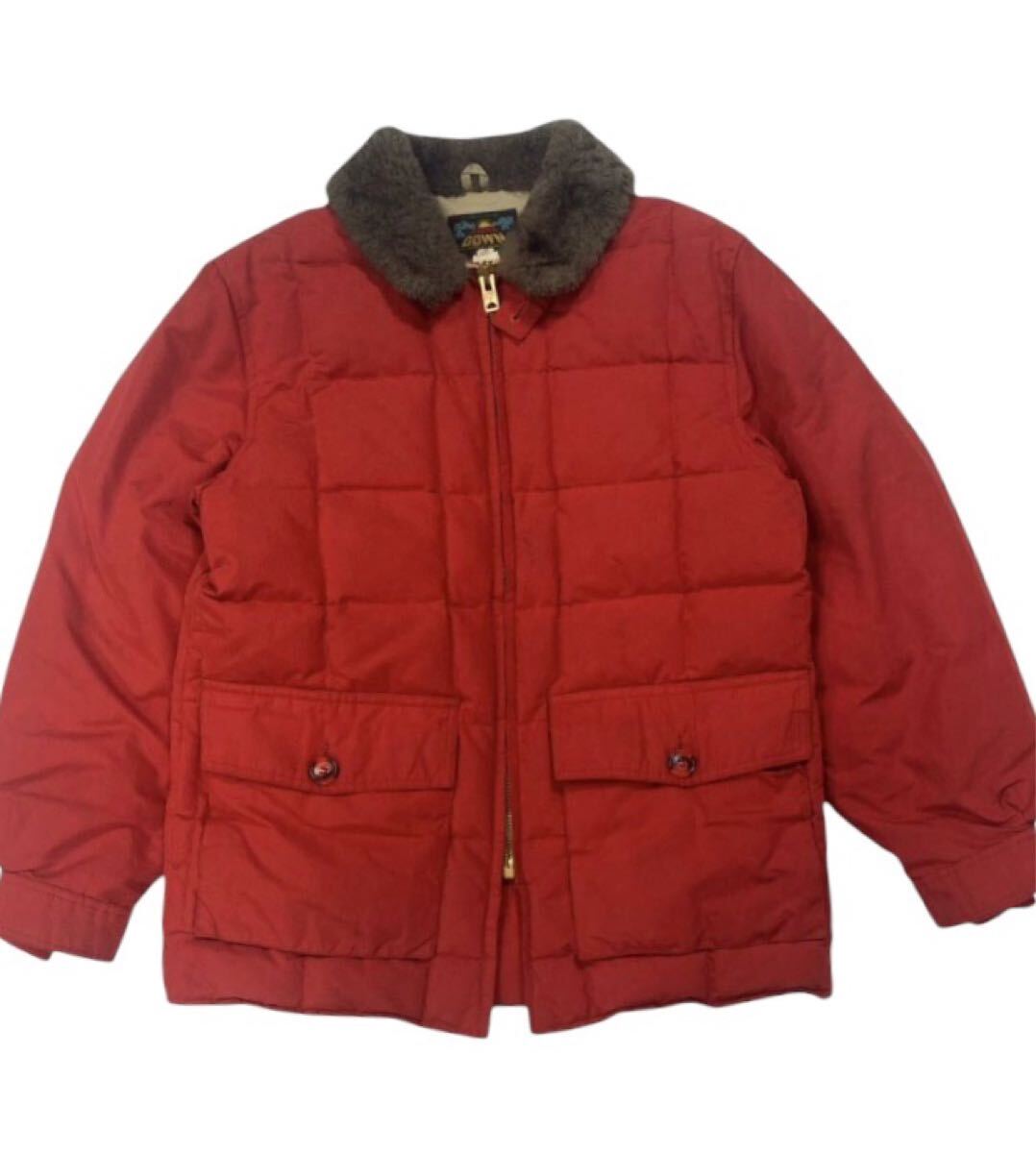 > 60s ヴィンテージ 日の出タグ ■ Eddie Bauer エディーバウアー ■ タロンジップ 襟ボア Yukon down ユーコン ダウン ジャケット レッド 40