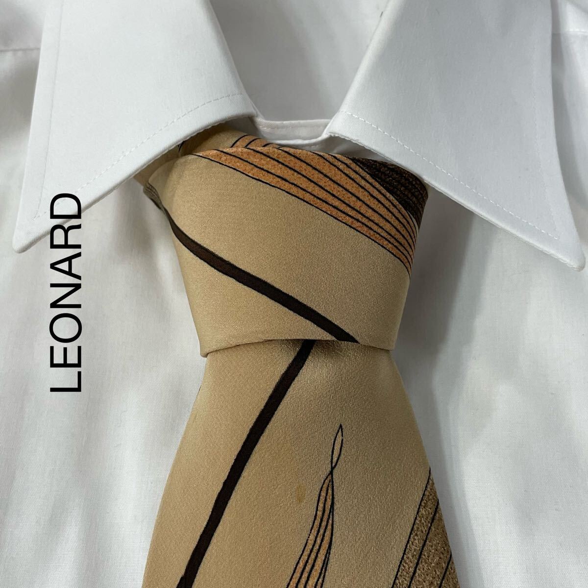 - LEONARD レオナール 植物柄 デザイン シルク ネクタイ イタリア製 ベージュ TG697