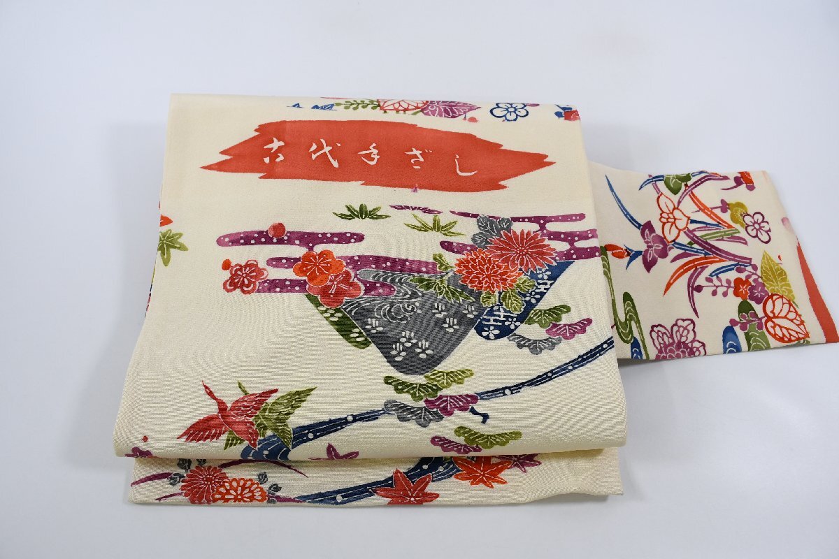 > 名古屋帯 古代手ざし ろうけつ染め 花 帯丈350cm ★着物屋 ne-13402 桜庭呉服店