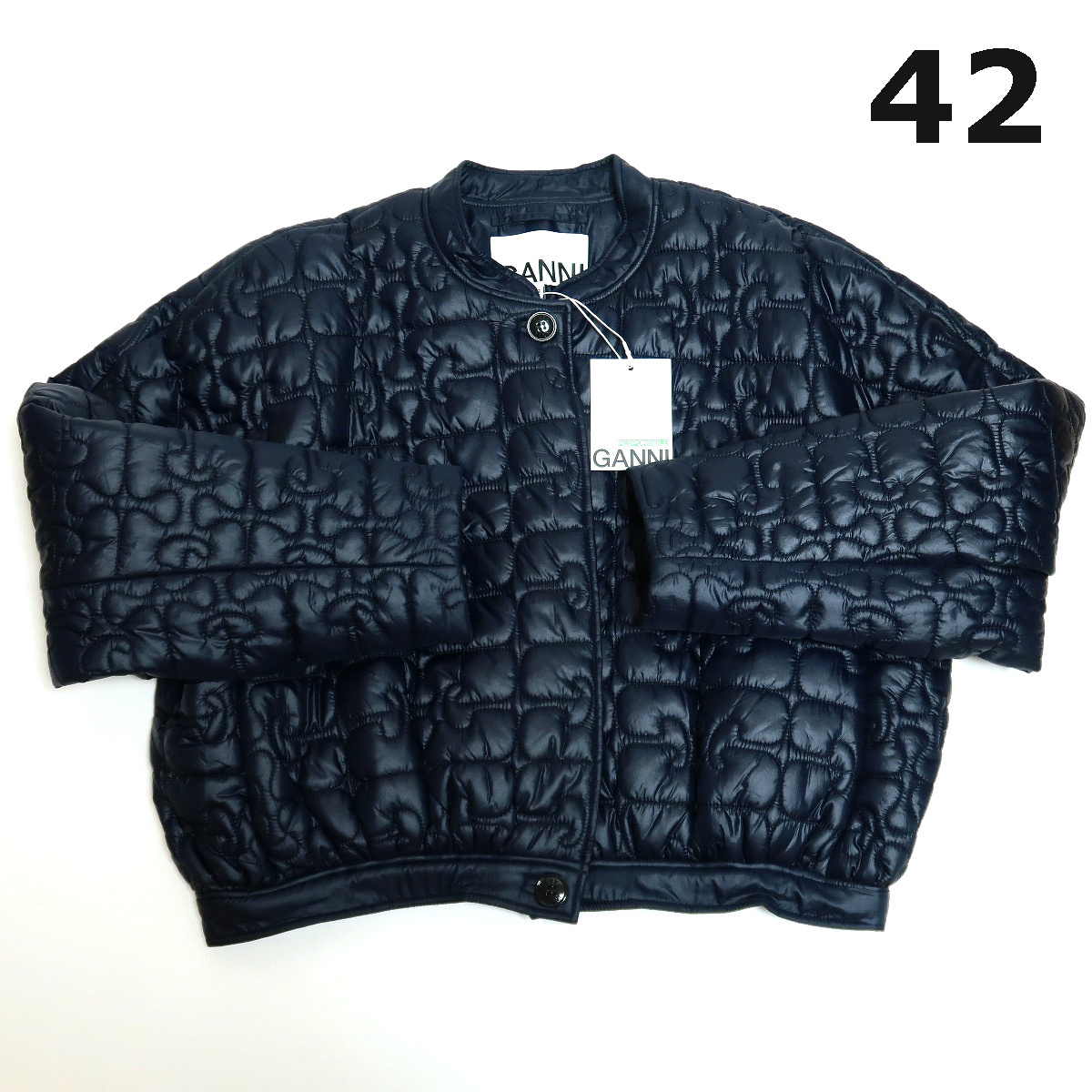- 42 新品 GANNI ロゴ キルティングジャケット 中綿 ブルゾン ネイビー ガニー バタフライ