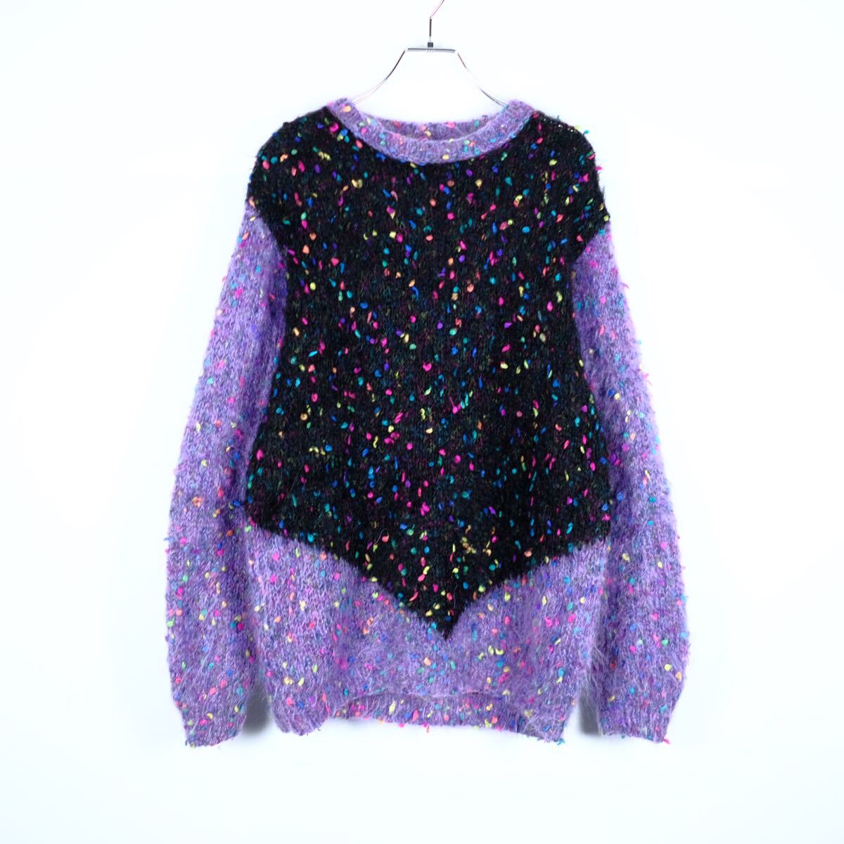 > 1970s ビンテージ ミックスニットセーター 切り替えデザイン アート 古着屋 ヴィンテージ ユーロ フランス モヘア モヘヤ