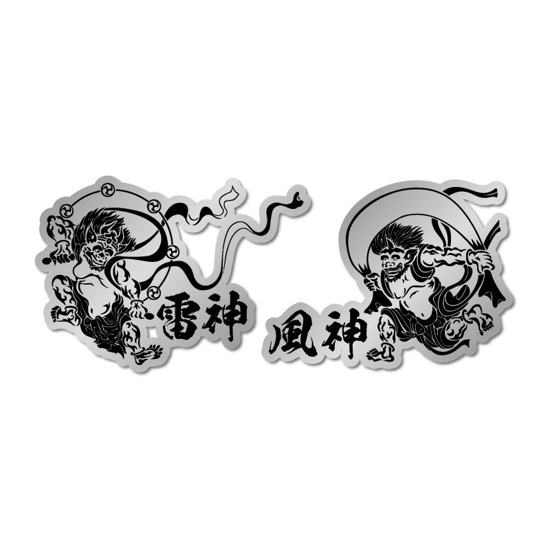 - (マットミラー)風神 雷神 銀ステッカー 黒文字 10cm 9cm ワンポイント 縁起物 守り神 和風 カッティング