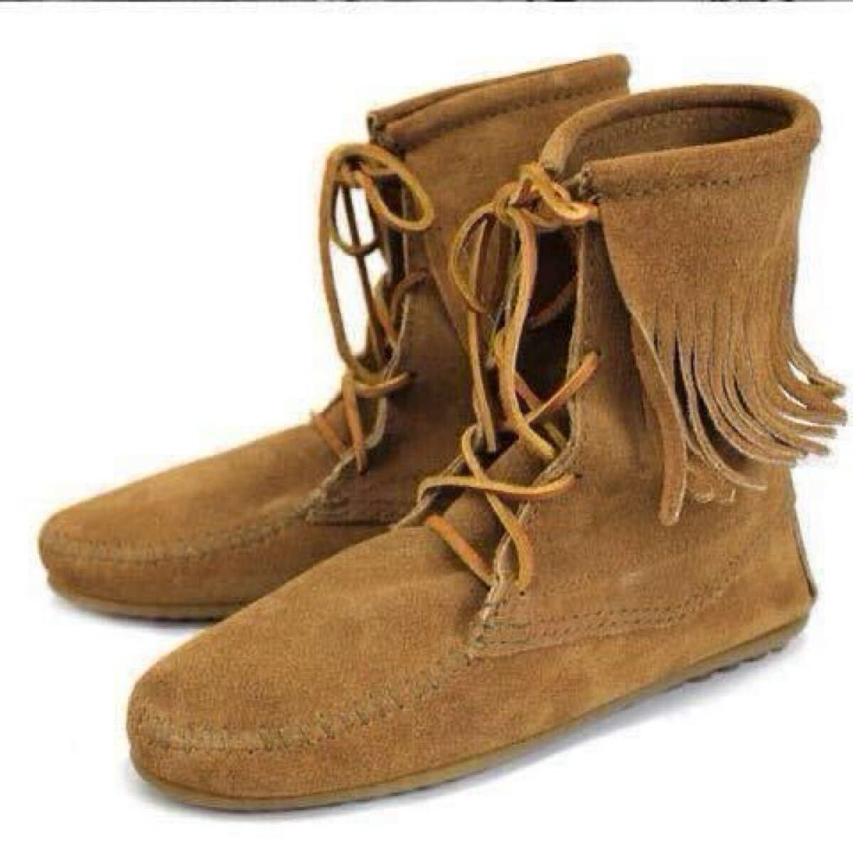 - 送料込み【ミネトンカ MINNETONKA/未使用】モカシン ショートブーツ レディース スェード/427T/US9 約25.5-26.0cm/TAUPE/NK000759