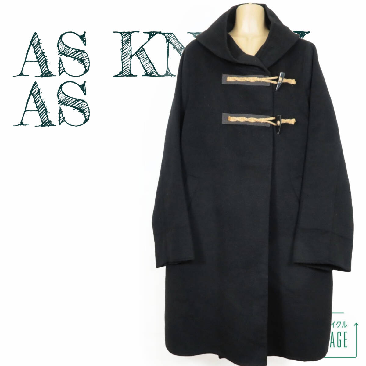 > 【美品】アズノウアズ オオラカ★ダッフルコート フード付き♪大人可愛い麻ひもトグル♪大きいサイズ13 あったかウール混♪黒系 z10404s
