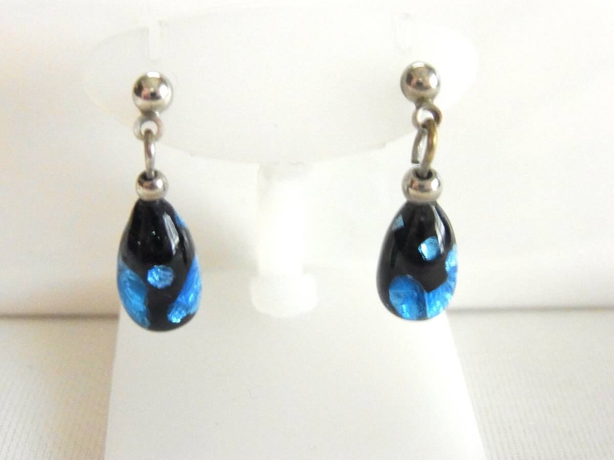 - ビンテージ/ヴィンテージ 美しいプルシャンブルーとブルートーンのオーロラビジューの雫形のストーン調 異国感 素敵なピアス★