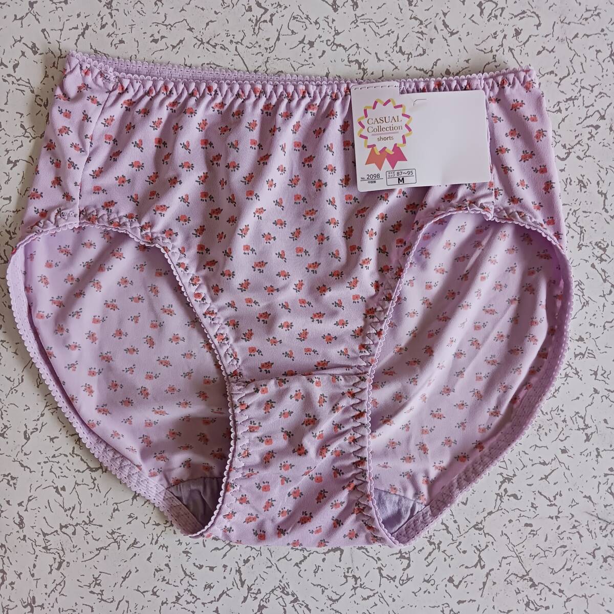 - 薄紫系地に薄オレンジ系小花模様のショーツ M