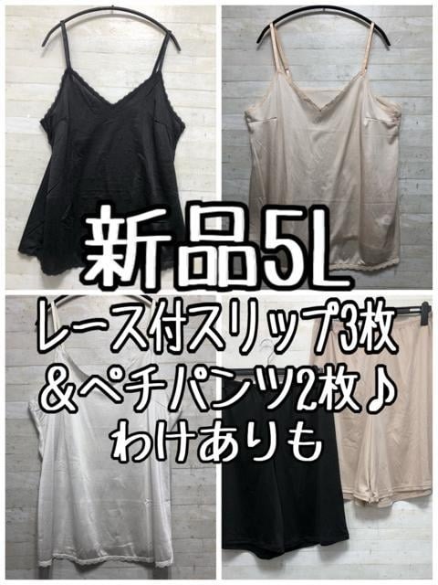 - 新品☆5Lレース付スリップ3枚&ペチパンツ2枚♪わけありも〇B632