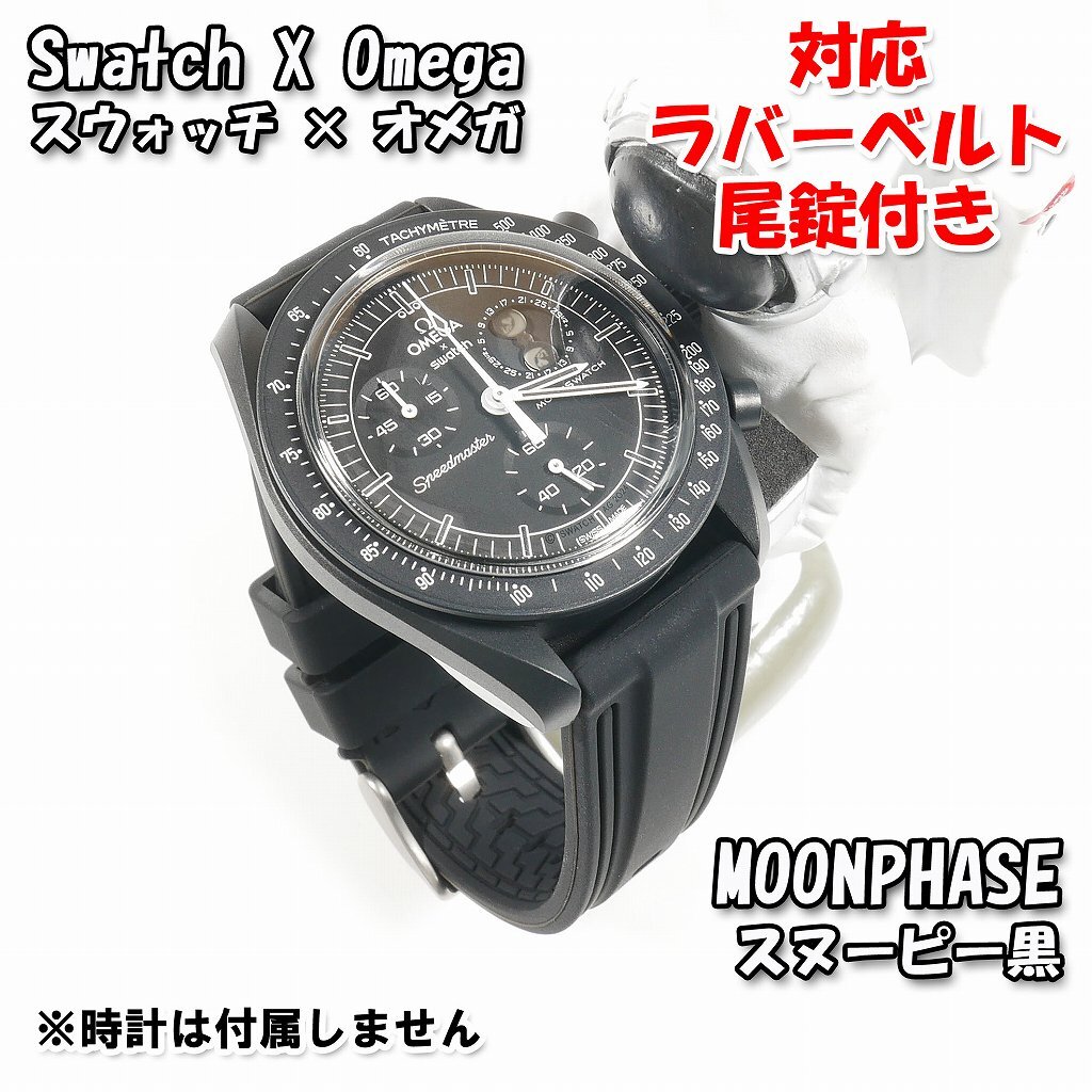 - Swatch×OMEGA スウォッチ×オメガ MOONPHASE(スヌーピー黒2)対応ラバーベルト 尾錠付き w