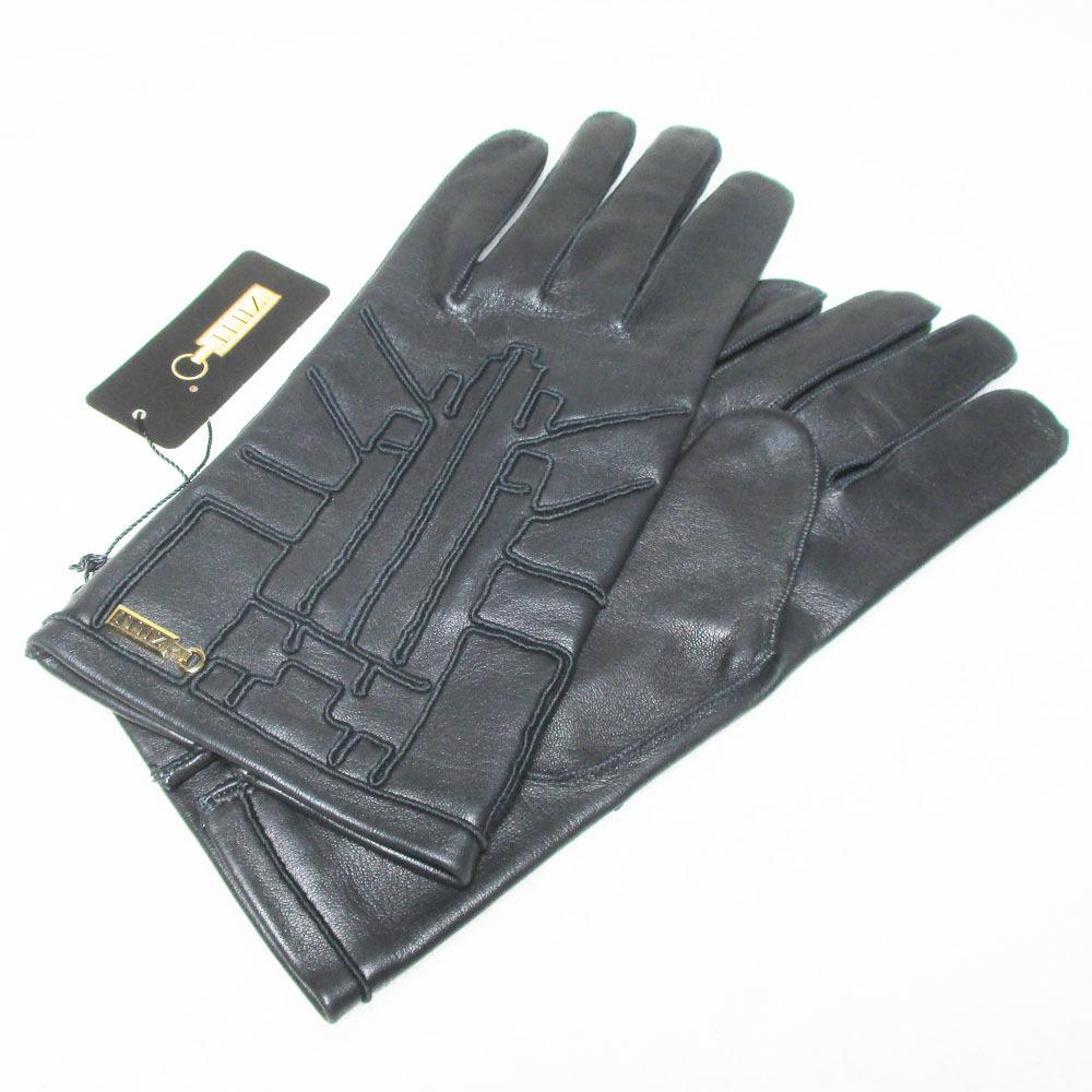- ZILLI ジリー レザーグローブ 子羊 刺繍 ブラック 8インチ 未使用
