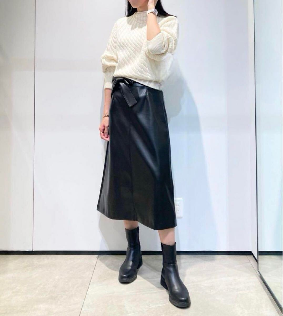 - セオリー定価3.9万 フェイクレザーAラインロングスカート ブラック黒 サイズ0