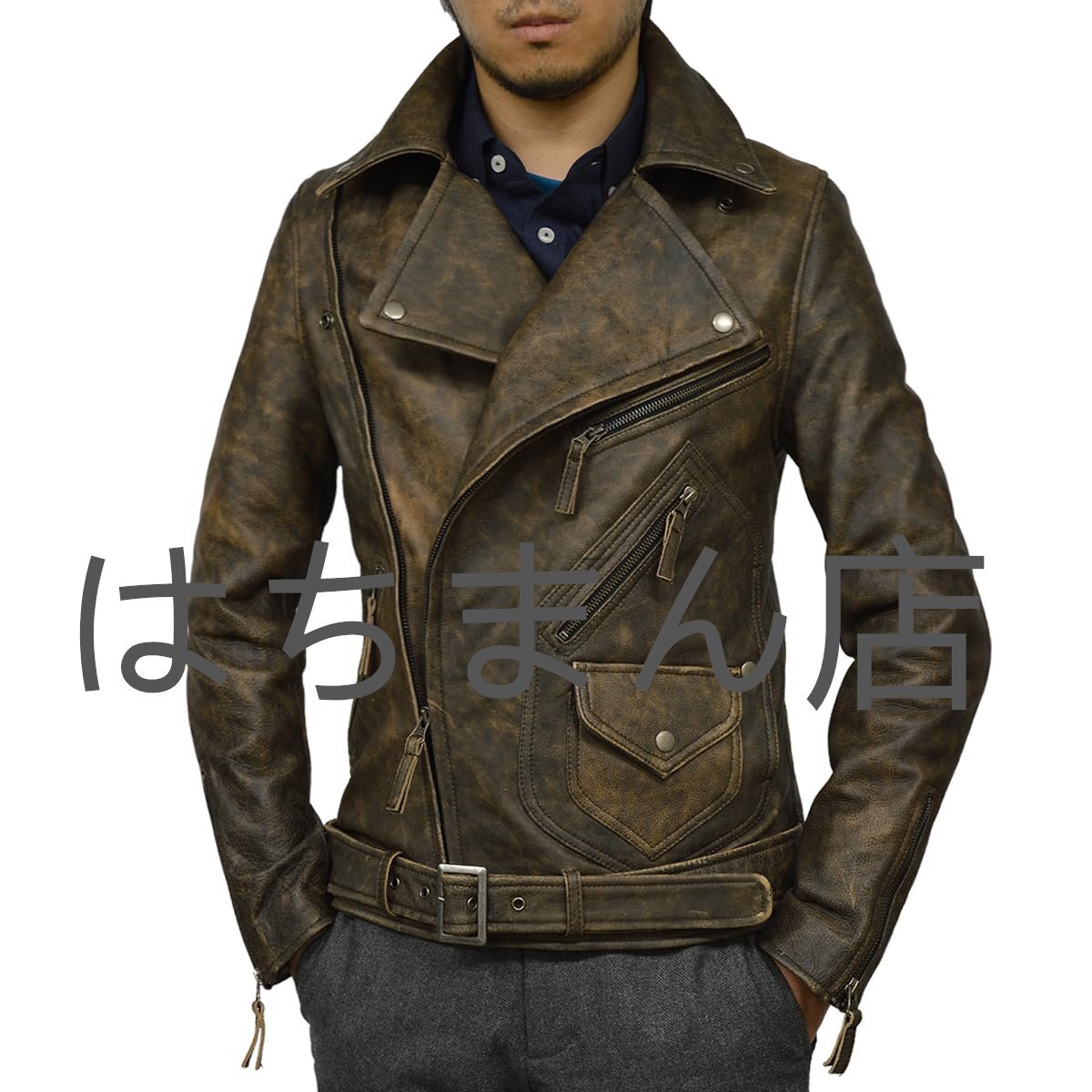 > ダブルライダースジャケット レザージャケット 革ジャン メンズ 本革 ダブル アンティークブラウン アンティークブラウン 茶 M-XL