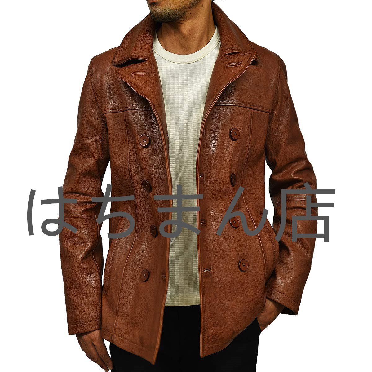- 本革 ピーコート メンズ レザージャケット レザーコート ライダースジャケット 革ジャン 皮ジャン Pコート 革コート キャメル S-3XL