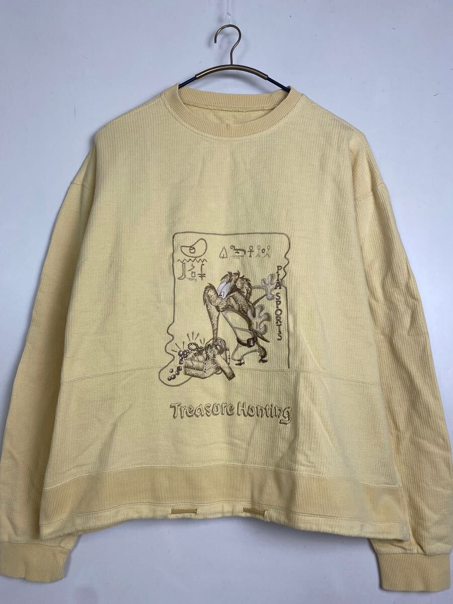 > ★ ヴィンテージ PIA SPORTS 裾紐 スウェットシャツ イエロー サイズ4 ◆ Treasure Hunting 刺繍 トレーナー ピアスポーツ ◆W14 CれVM9-06