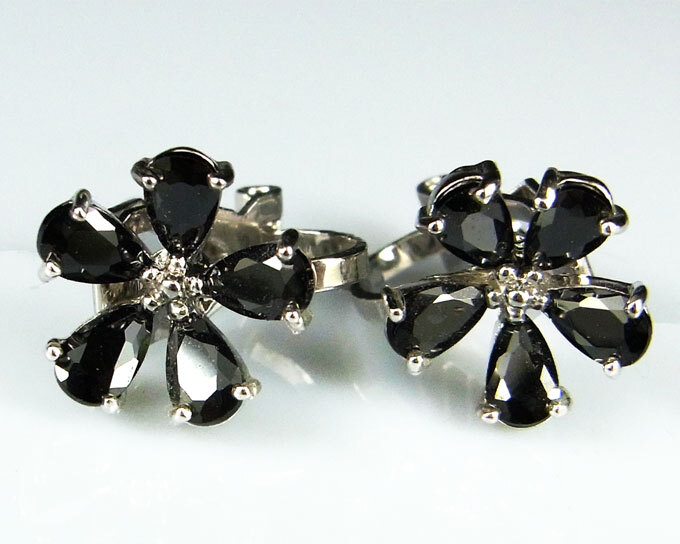 - イヤリング レディース フラワー 花 ビジュー キラキラ ラインストーン ブラック mimosa