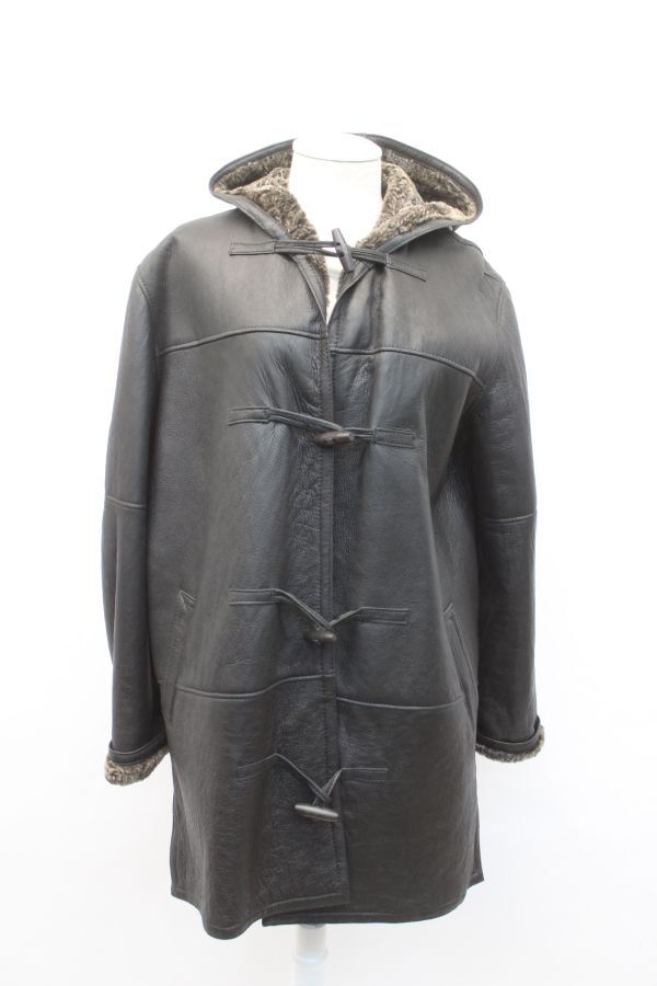 - ブラック/ブラウン シープスキン/ラム毛皮ファー・コート アメリカンサイズ6 フードつき