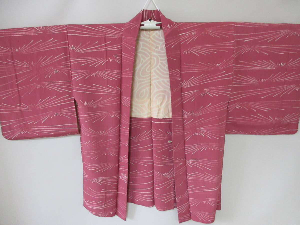 - 47-5 和装 羽織 赤ピンク系 松葉 和服 身丈約71㎝
