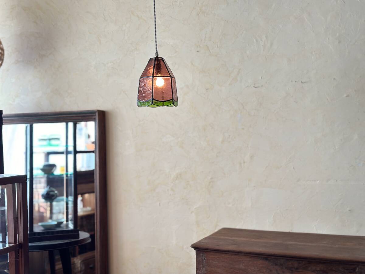 - 照明 ペンダントライト ヴィンテージ アンティーク 古道具 レトロ ランプ インテリア 時代物 昭和レトロ スタンドグラス スタンドガラス